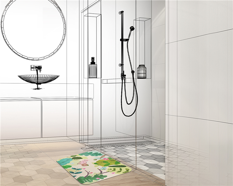 3款設計以甜日子品牌角色“羊駝甜甜”在享受潔淨的美好體驗為發想。分別為享受泡泡浴(1泡泡甜 )、在樹蔭下曬日光浴 (2日光甜)、乘坐鳥兒飛翔 (3翱翔甜)3款皆以花卉及泡泡連貫,色彩柔和大色塊呈現在地墊上,親近自然的花草植物,為居家整體的佈置帶來亮眼的氛圍。